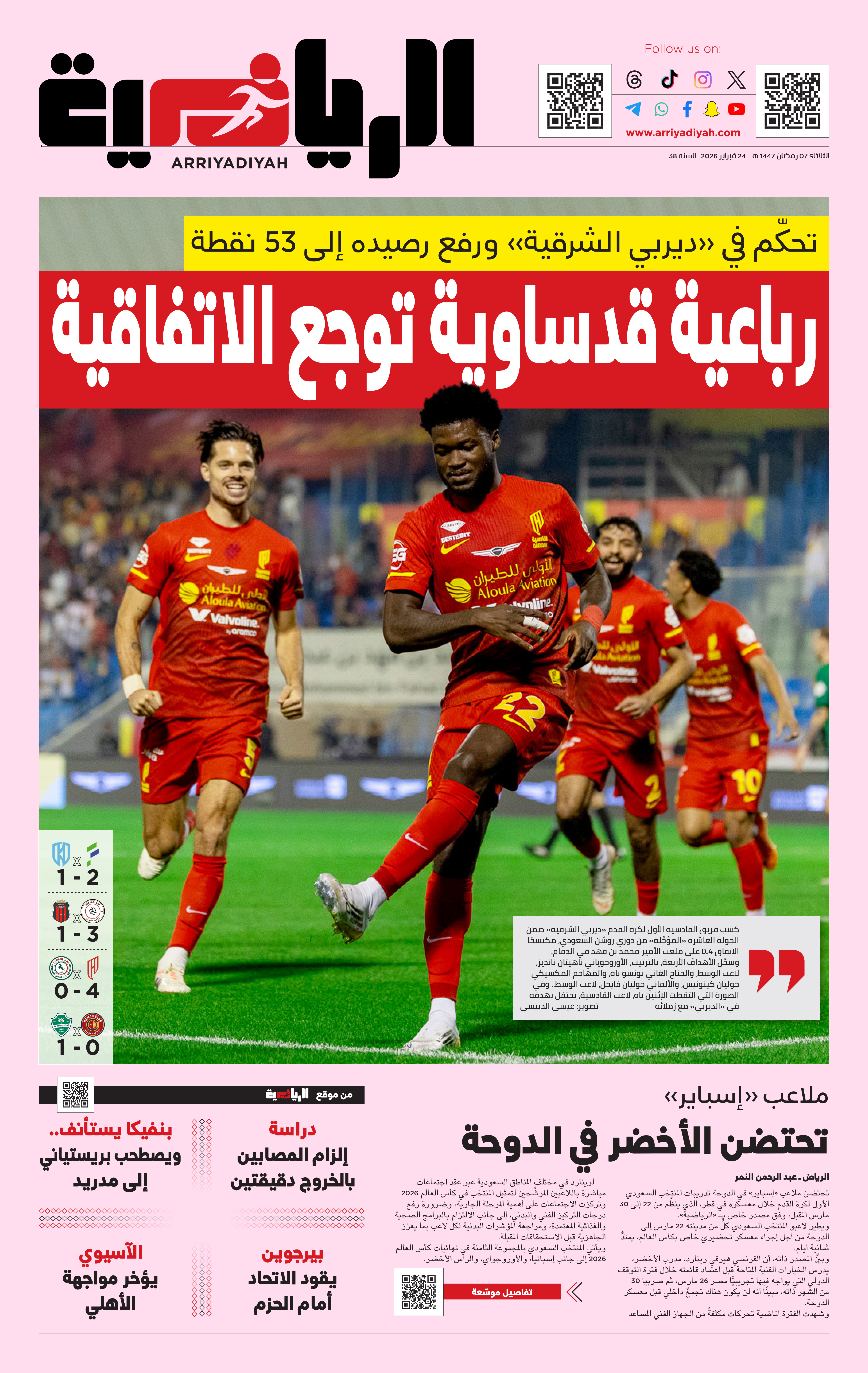 فريق الشباب يحتل المركز الثاني بعد مرور ثماني جولات على الدوري، وفي المباريات الثلاث الأخيرة، حقق العلامة الكاملة، وأعتقد أن جميع الخطوات متوازنة في النادي، وبالتأكيد ستعيد الفريق الأول لكرة القدم إلى منصات التتويج.